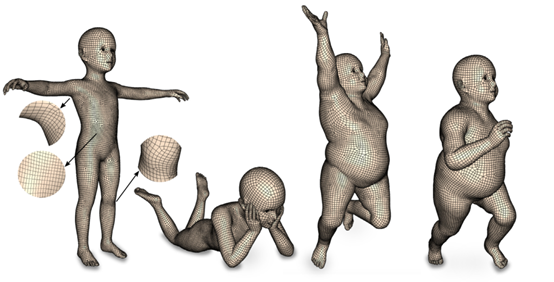 Quadrangulation of non-rigid objects using deformation metrics Jiaran Zhou, Marcel Campen, Denis Zorin, Changhe Tu, Claudio T. Silva. Computer Aided Geometric Design (GMP), 2018. [Paper] [BibTex]